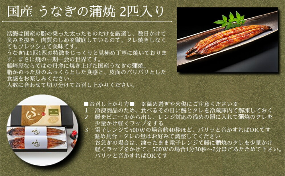 - 【ふるさと納税】 国産 うなぎの蒲焼 2匹入り 【藤崎屋】 | ふっくら あっさり 香ばしい タレ付 山椒付