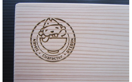 - 国産の天然木杉材を使用したまな板(中)うけどん焼印入り