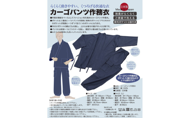 AP-25 カーゴパンツ作務衣(L)【有名劇団の舞台衣装に携わる縫製職人が仕立てた】