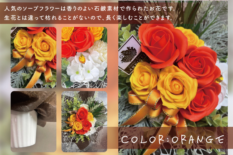 - ES-3 陶器入りソープフラワー(オレンジ) ギフトバッグ付き
