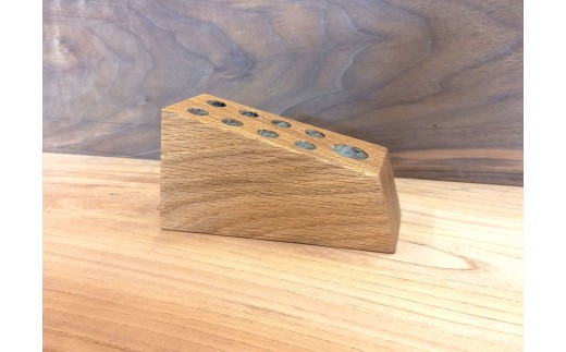 【文字入れ】まるでチーズのようなペン立て。ホワイトオーク(9個穴)