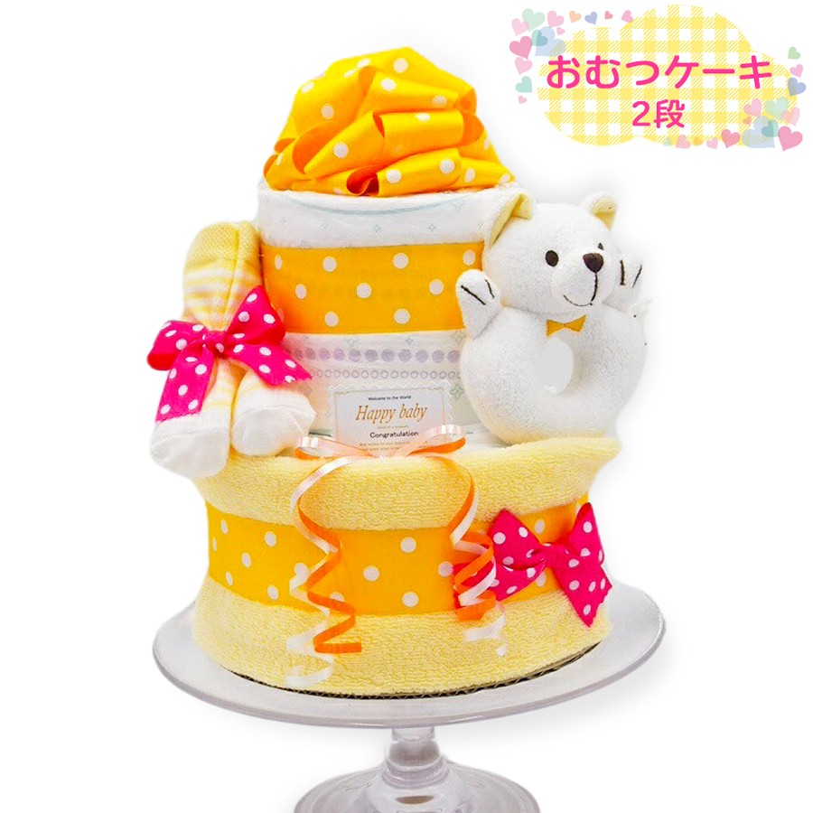 - [おむつケーキ] 2段今治タオル・クマラトル付き フレーバー マンゴー [0264]