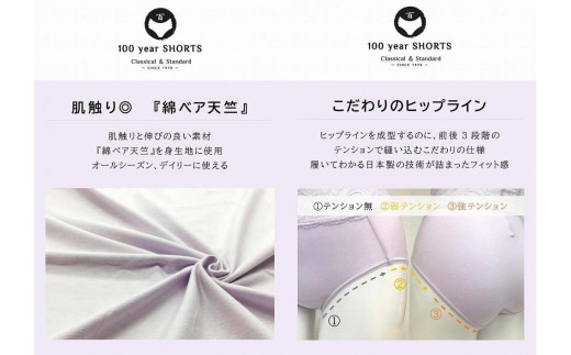 - 百年ショーツ【色・サイズ選択可】 日本製栃木の工場直売 縫心オリジナル下着 百年変わらない究極のスタンダードショーツ