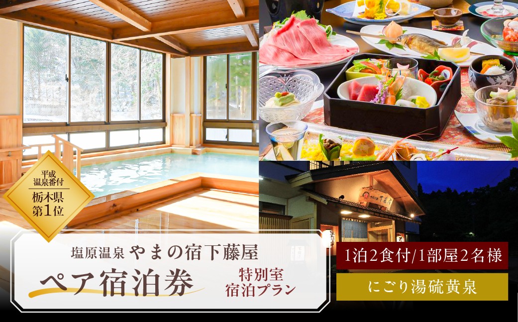 - 【平成温泉番付】栃木県第1位 にごり湯と美食 塩原温泉 やまの宿下藤屋 特別室宿泊プラン ふるさと納税ペア宿泊利用券(1泊2食付き) 54,000円券【 旅行 体験・チケット 栃木県 那須塩原市 】