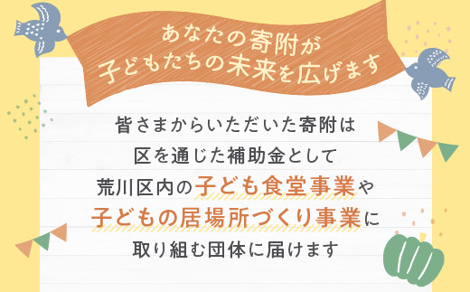 - 荒川区子どもの居場所づくり事業・子ども食堂事業の支援(返礼品なし)1口 300,000円