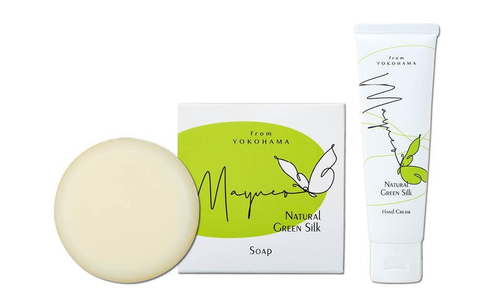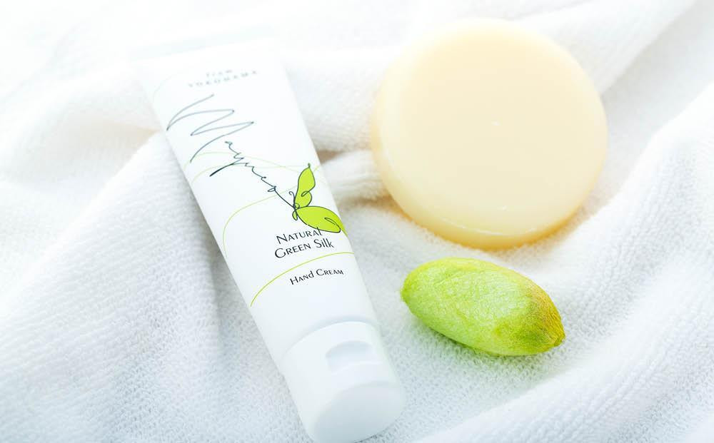 - 国産グリーンシルク配合 ハンドクリーム、せっけんセット【ハンドクリーム1本・せっけん1個入り)