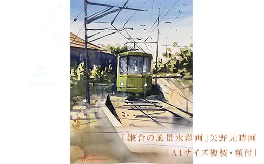 鎌倉の風景水彩画[A4サイズ複製・額付]