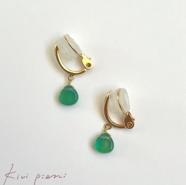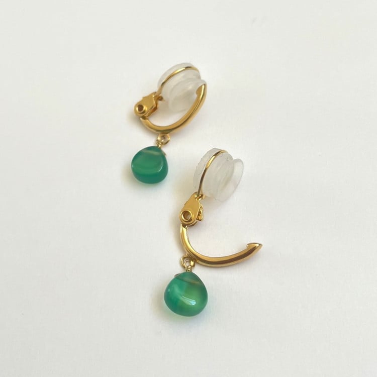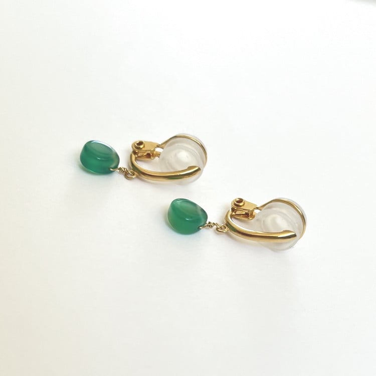 - 【天然石ジュエリー】グリーンオニキス Ag ソフトイヤリング ※着日指定不可