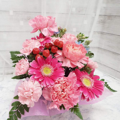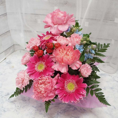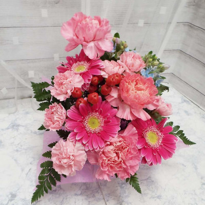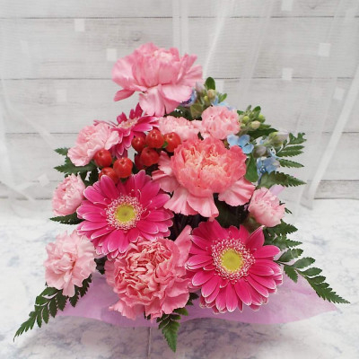 - お任せ アレンジメント 生花 お祝い ピンク系【1343522】