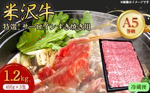 <特選米沢牛A-5>サーロインすき焼き用 1.2kg(400g×3包) (冷蔵便)【1204180】