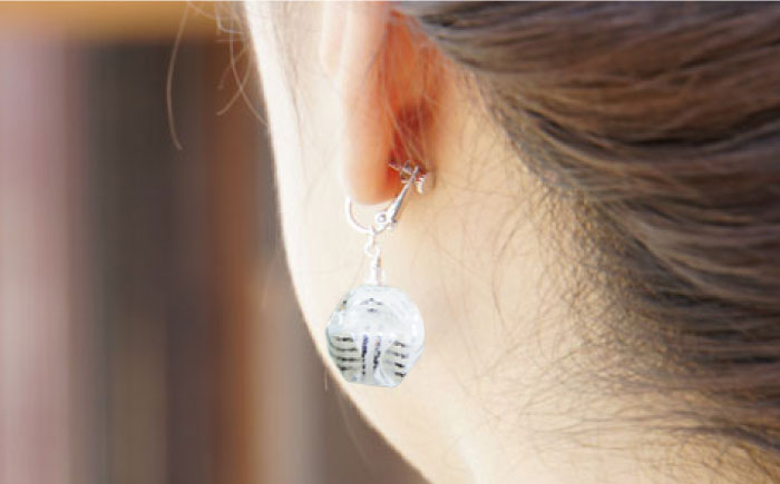 - (E)vd02-002 Balle 縞 シルバー イヤリング 美濃和紙 アクセサリー レジン ガラスビーズ 真鍮