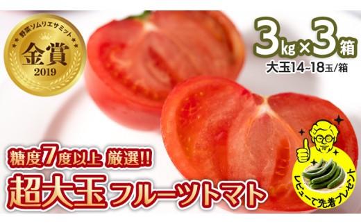 超大玉 フルーツトマト 大箱 3kg × 3箱 【14~18玉/1箱】 糖度7度 以上 野菜 フルーツ トマト フルーツ トマト とまと [AF076ci]