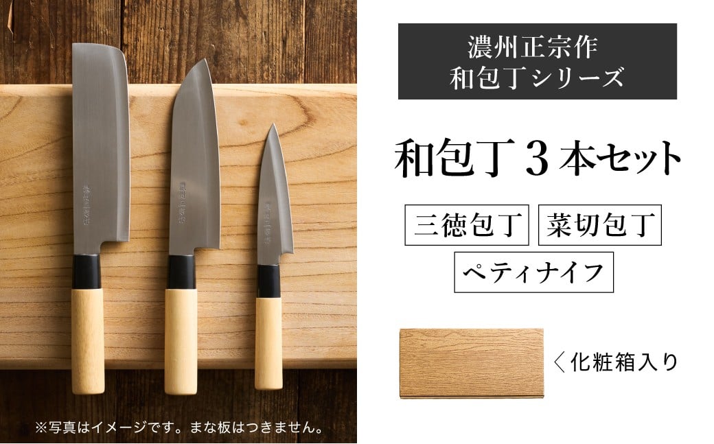 - 濃州正宗作 白木柄 ステンレス和包丁セット 【三徳包丁、菜切包丁、ペティナイフ】~和包丁 ステンレス素材なので錆びづらい 関の職人 白木ハンドル ほうちょう 包丁 日本製 国産 ステンレス おすすめ 人気 初心者の方にも~