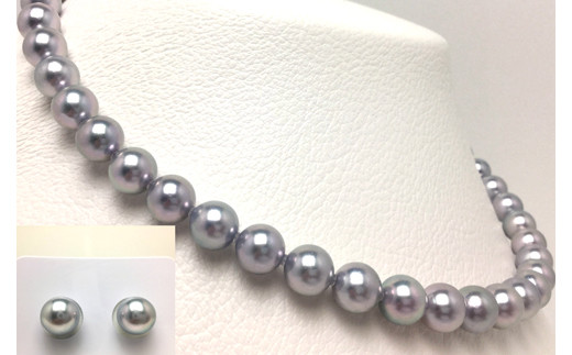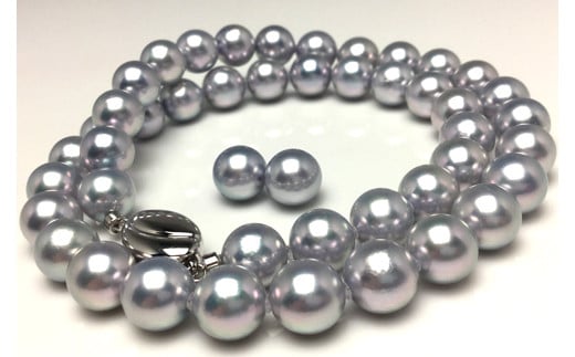 - 老舗の真珠専門店・高品質アコヤ真珠ブルーネックレスセット8.5~9.0mm(イヤリングセット) / あこや ネックレス 真珠 伊勢志摩 志摩 アクセサリー ギフト パール 母の日 記念 冠婚葬祭 〔700-10〕