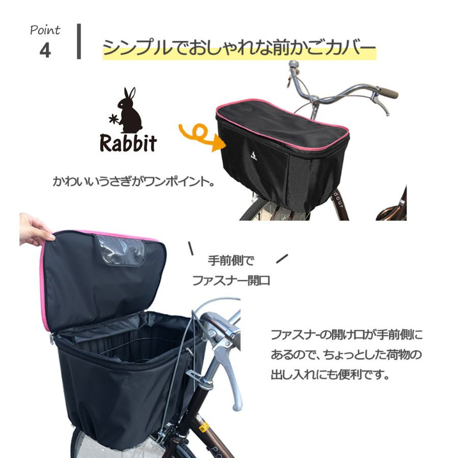 - ラビット自転車 前かごカバーワイド ブラック×フチベージュ [0328]