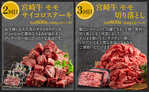 定期便 3ヶ月 お楽しみ 宮崎牛 赤身肉セット 計2.4kg【牛肉 3回 毎月】_M241-T009