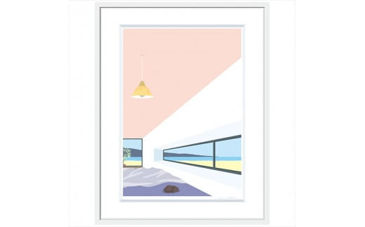 - 【私の好きな人、昼】小説付き 直筆サイン入り 額付きジークレープリント 小田原にある景色 心象風景 片田舎の風景 子供の頃に見た風景 海 空 山