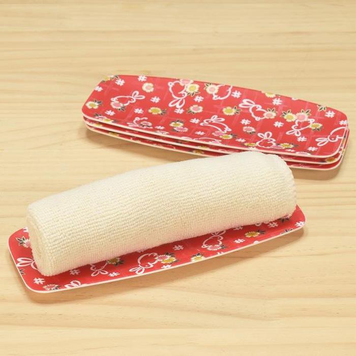 - 【ふるさと納税】友禅和紙おしぼりトレー 5枚セット 小花 舞うさぎ タツクラフト