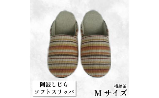 【Mサイズ】阿波しじらスリッパ(横縞茶)