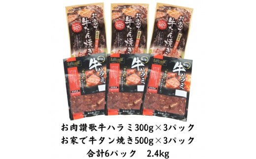 お肉讃歌の牛ハラミと 牛タン 味付け切り落としセット 2.4kg <肉の匠 中むら屋厳選> 【1681】