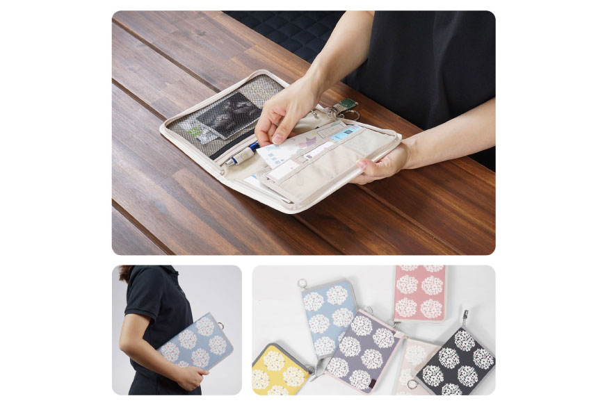 AH148 マルチケース (ファスナータイプ) サークルフラワー Lモデル 1個 【 母子手帳ケース 2人分 花柄 フラワー かわいい おしゃれ 軽量 Pouche ポーチェ 長崎県 島原市 】