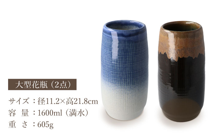 - 【美濃焼】 大型花瓶 2点セット 織部 吹墨 【井澤コーポレーション/菱登製陶所】 花瓶 和風 [TBP075]