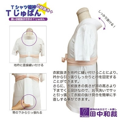 - Tじゅばん Tシャツ襦袢 衣紋抜き+【色柄 種類:白無地ポリ(塩瀬風)】女性用 田中和裁 S/M/L/LL