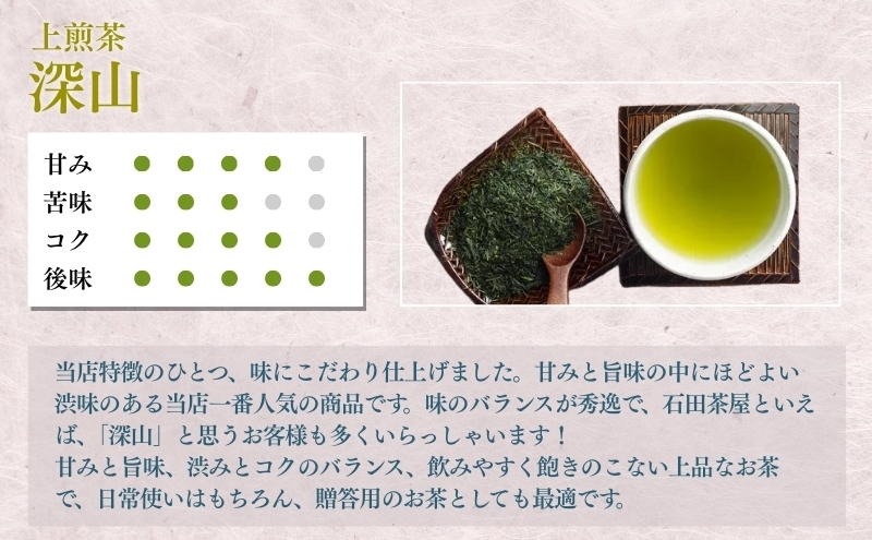 - 上煎茶飲み比べセット(深山・ふくよ香・アサツユ・サエミドリ・掛川茶 各100g)