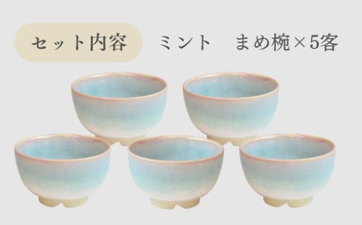[№5226-0151]萩焼 ミント まめ碗5客セット