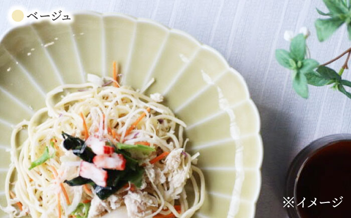 【波佐見焼】四つ菊 大皿 ベージュ 1点【永泉】 [MC86]