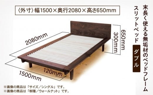 スリットベッド ダブル(ウォールナット)無垢材 D00025