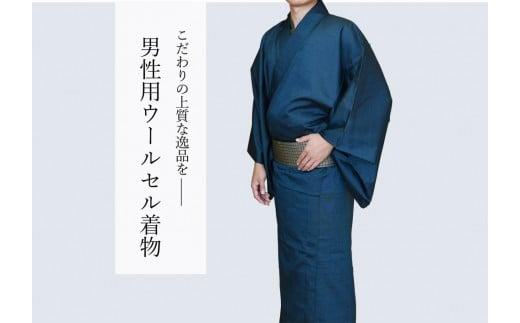 八王子織物業の技術で織り上げた着物 ウールセル(毛73%ポリエステル25%ナイロン2%)着物のみ(紺色系/LLサイズ)