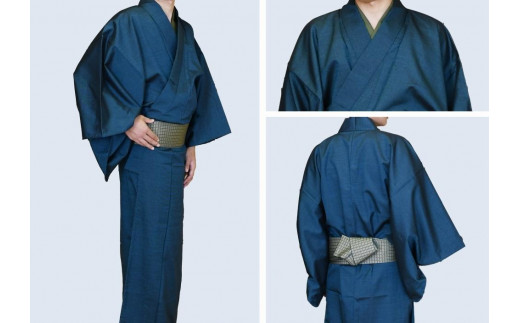 - 八王子織物業の技術で織り上げた着物 ウールセル(毛73%ポリエステル25%ナイロン2%)着物のみ(紺色系/LLサイズ)