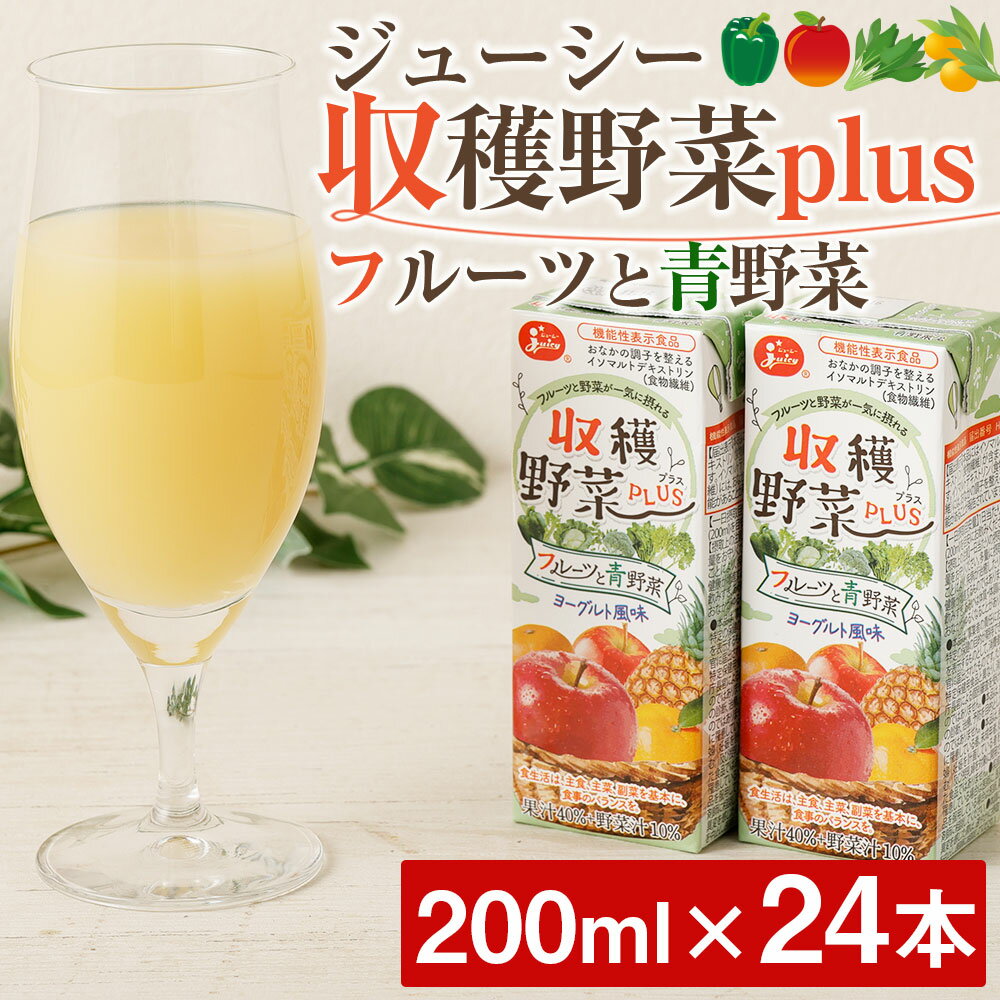 【ふるさと納税】ジューシー収穫野菜plusフルーツと青野菜 200ml×24本 計4.8L ジューシー じゅーしー 野菜ジュース フルーツジュース ヨーグルト風味 機能性表示食品 食物繊維 紙パック 送料無料