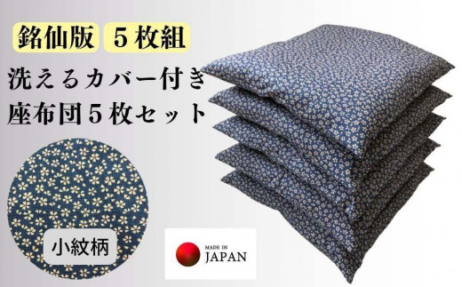 - 《洗えるカバー付き座布団 5枚セット》座布団小紋5P