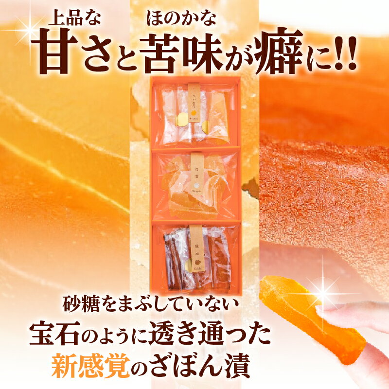 - 【ふるさと納税】ざぼん漬 3種 セット 食べ比べ 菓子 デザート 果物 お菓子 和菓子 柑橘 ざぼん 文旦 モチモチ 個別包装 琥珀 べっこう 郷土菓子 お土産 銘菓 ギフト 贈答 箱入り 小分け 上品な甘さ ほどよい苦味 送料無料