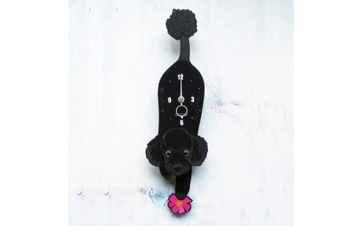 - D-004F1 プードル(黒)-犬の振り子時計 花01.ORANGE