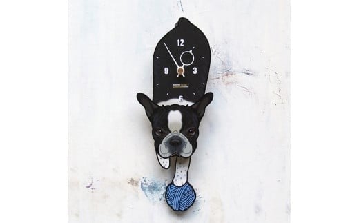 - D-056F3 フレンチブル(白黒)-犬の振り子時計 花03.RED