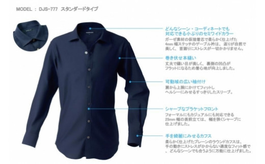 - DJS-777 decollouomo メンズドレスシャツ 長袖(生地/オーヴァーチュア)スタンダードタイプ ダークネイビー/MLサイズ