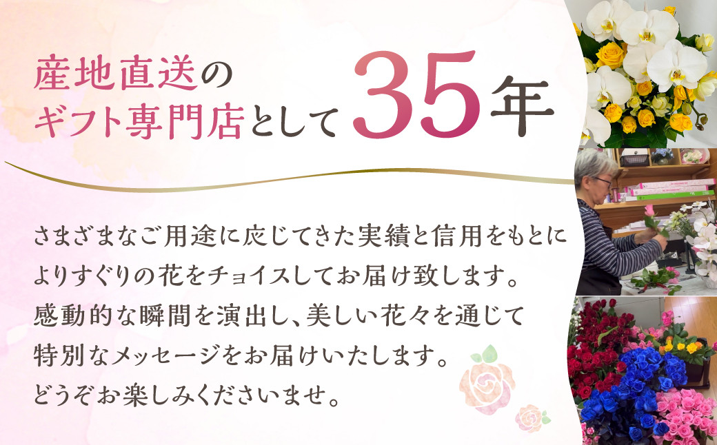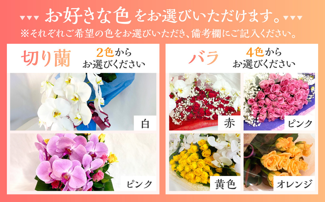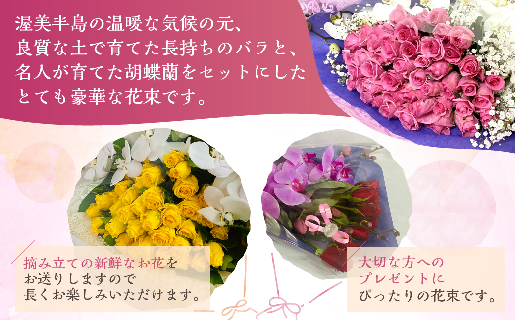 ランとバラの花束 ラン5本 季節の旬の花を添えて バラ 50本 花束 薔薇 胡蝶蘭 花束 生花 ギフト プレゼント 日時指定可 愛知県 田原市 100000円 10万円