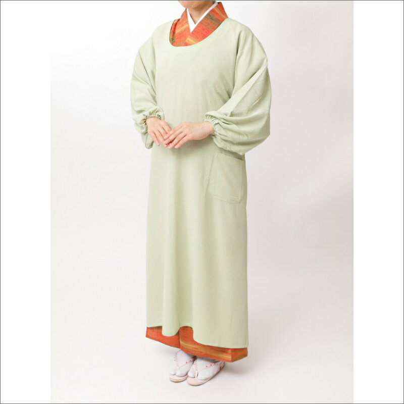 【ふるさと納税】丹後ちりめん・割ぽう着 色(グリーン) フリーサイズ ポケット付 キッチン用品 エプロン 割烹着 かっぽうぎ ちりめん 料理 グリーン ふるさと 納税 キッチン用品 丹後ちりめん 縮緬 洗濯OK 撥水効果 国産 日本製 京都 送料無料