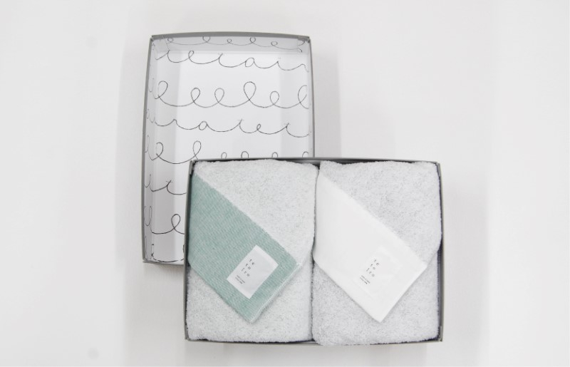 銀の糸と雪音加工 バスタオル 2枚 A4サイズの収納箱入り
