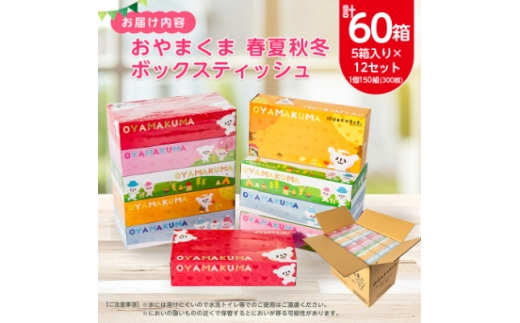 - おやまくま春夏秋冬ボックスティッシュ 60箱(5箱入り×12セット)(1箱150組(300枚))【1093660】