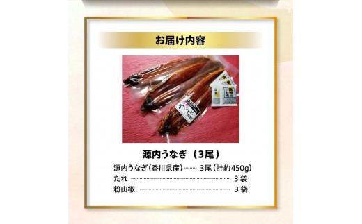 - 源内 うなぎの蒲焼 3尾 ( 150g × 3尾 ) 香川県産 | うなぎ 蒲焼 たれ・粉山椒付き