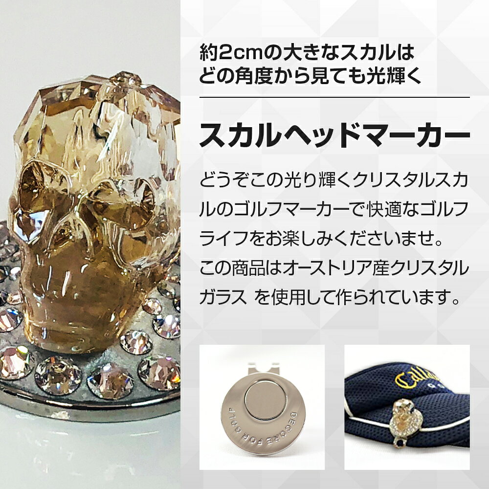 【ふるさと納税】スカルヘッドマーカー ブロンズ 直径約2.5cm マーカークリップ ボールマーカー マーカー ゴルフ用品 ゴルフ クリスタル スカル ハンドメイド 手作り 巾着袋付き 送料無料