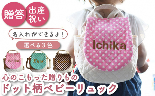 - 【ミント×ブロンズ刺繍】ベビーリュック ドット柄/水玉 一升餅にも〈名入れ可能・3色から選べる〉 [OCR017]