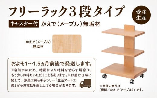 - 【広めの棚板が魅力】 フリーラック3段タイプ かえで(メープル)無垢材 180001