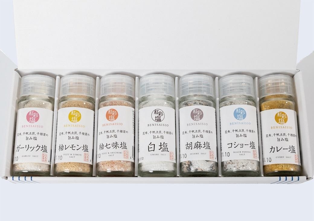 国産天然のだし素材を使用した贅沢調味塩 「紅彩塩 べにさいしお」7種セット