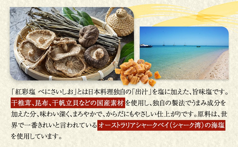 - 国産天然のだし素材を使用した贅沢調味塩 「紅彩塩 べにさいしお」7種セット