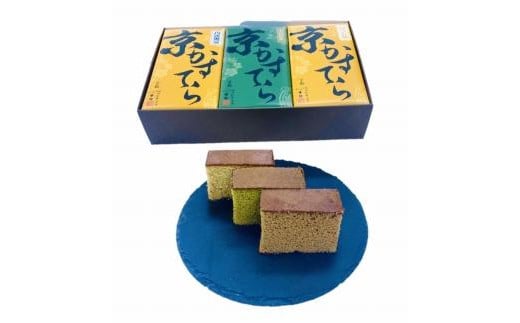 - 【カステラハウス一番館】箱入り京カステラ 詰め合わせ 小3本(宇治抹茶・丹波黒豆・ほうじ茶)